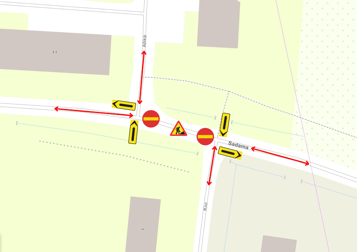 Ümbersõit on võimalik Kivi ja Allika tänavate kaudu (vt skeem 2).